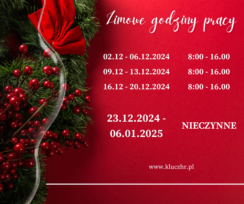 Informujemy, że w związku ze zbliżającym się okresem świąteczno-noworocznym biuro Lidera projektu w Olsztynie będzie nieczynne od 23 grudnia 2024 do 6 stycznia 2025.